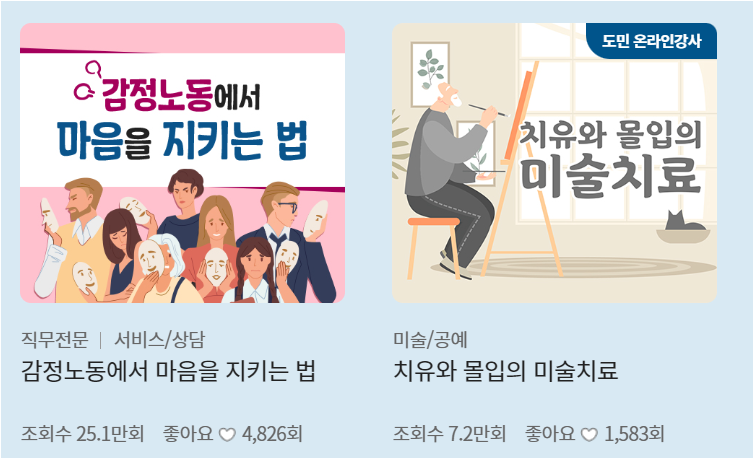 수강료: 무료(일부 강좌는 재료비 및 자격증 취득비 등이 별도로 부과될 수 있음)