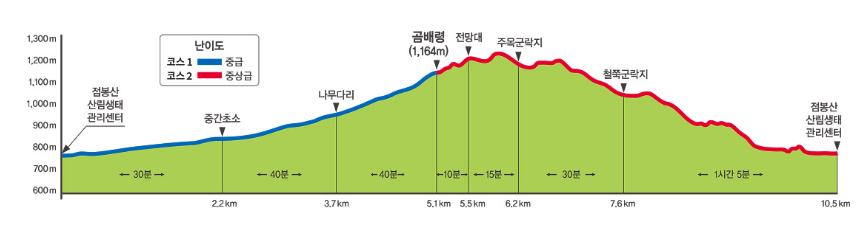 [코스 1] 편도 5.1km(1시간 50분 소요 난이도 중) 점봉산산림생태관리센터 ↔ 곰배령 정상부