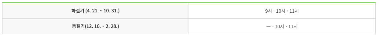 운영시간은 9시~16시 (곰배령 정상부 14시 하산 종료)이며 입산마감 : 11시 (코스1 중간초소 12시)입니다. 기상특보(호우, 태풍, 대설 등) 발효 시 입산 통제됩니다.