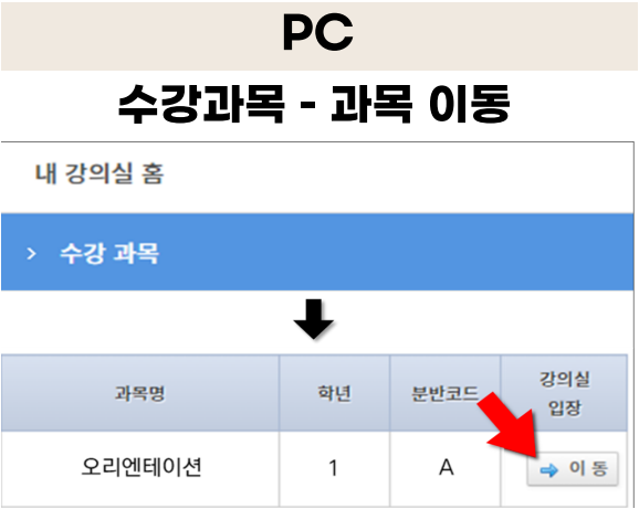 강의실 메뉴에서는 등록된 강의를 확인하고 수강할 수 있어요. 각 강의의 강의자료, 과제, 공지사항 등을 확인할 수 있으며, 필요에 따라 온라인으로 강의를 시청할 수 있습니다. 이 메뉴를 통해 학생들은 집에서도 편리하게 학습할 수 있어요.