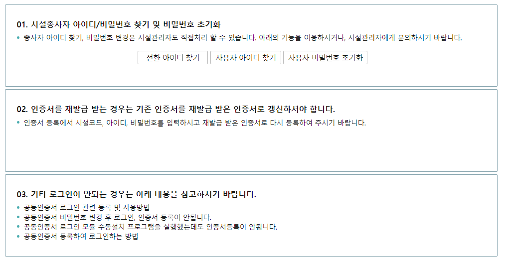 2. 비밀번호를 모르는 경우 또는 5회 이상 로그인 실패 시: 아래의 ID/PW찾기 버튼을 클릭하여 사용자 비밀번호 초기화를 진행하세요.