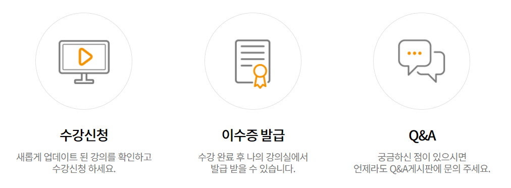 e-중장년은 대한민국 평생현역준비 프로젝트 생애경력설계 서비스를 제공합니다. 이는 활기찬 경력관리를 위해 인생 후반부를 미리 준비할 수 있도록 지원합니다. 수강신청은 새롭게 업데이트된 강의를 확인하고 신청할 수 있으며, 수강 완료 후에는 이수증을 발급 받을 수 있습니다. 궁금한 사항이 있을 경우 언제든지 Q&A 게시판에 문의할 수 있습니다.