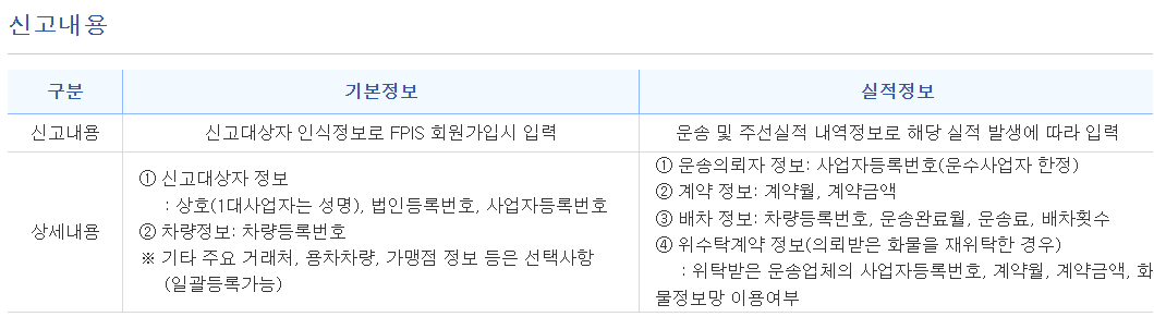 - 화물운송실적관리시스템(FPIS)을 통한 신고