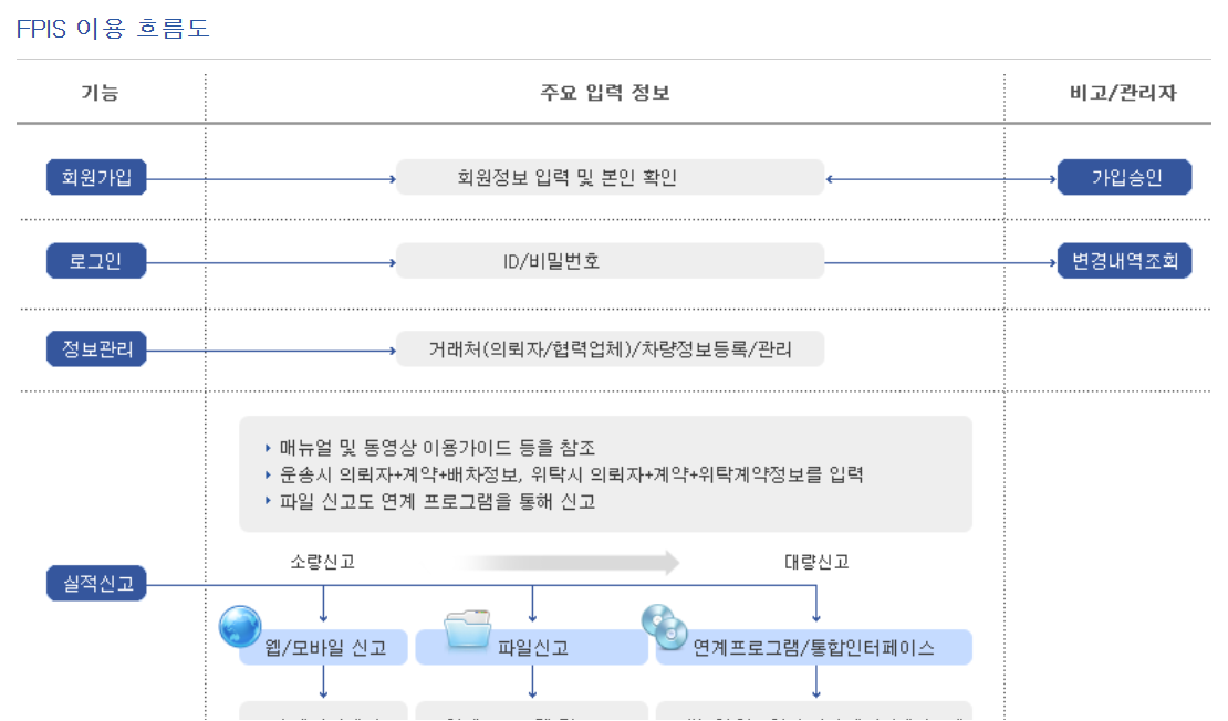 - 화물운송실적관리시스템(FPIS)을 통한 신고