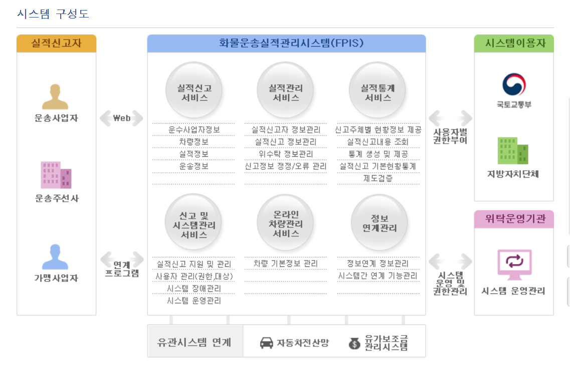이 시스템은 운수사업자가 운송 또는 주선한 화물운송 실적을 신고하기 위한 채널을 제공합니다. 이를 통해 운수사업자들은 정해진 절차에 따라 운송 실적을 정확하게 제출할 수 있습니다.