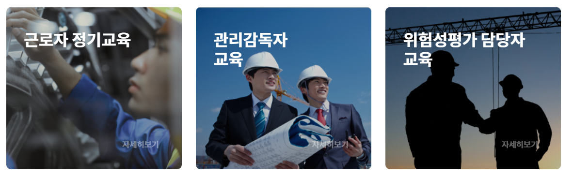 산업 현장에서 필수적으로 이수해야 하는 의무교육부터 고급 안전관리자 과정까지 다양한 교육 프로그램이 안내됩니다. 각 교육 과정의 대상, 교육 시간, 비용 등이 명확하게 정리되어 있어, 사용자들이 자신에게 맞는 과정을 쉽게 선택할 수 있습니다.