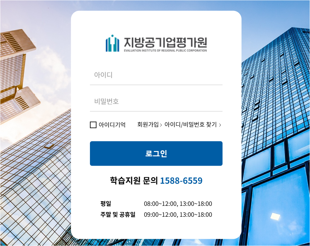 - 회원 가입: 지방공기업평가원 이러닝센터 홈페이지에 접속해 회원 가입을 진행합니다.