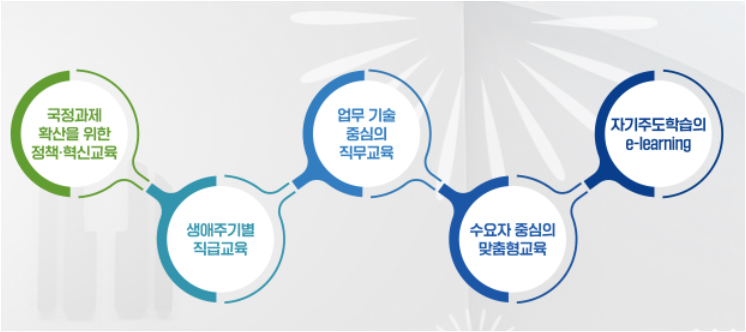 - 필수 교육: 공공기관 임직원이 반드시 이수해야 하는 청렴 교육, 개인정보 보호 교육 등 교육 과정