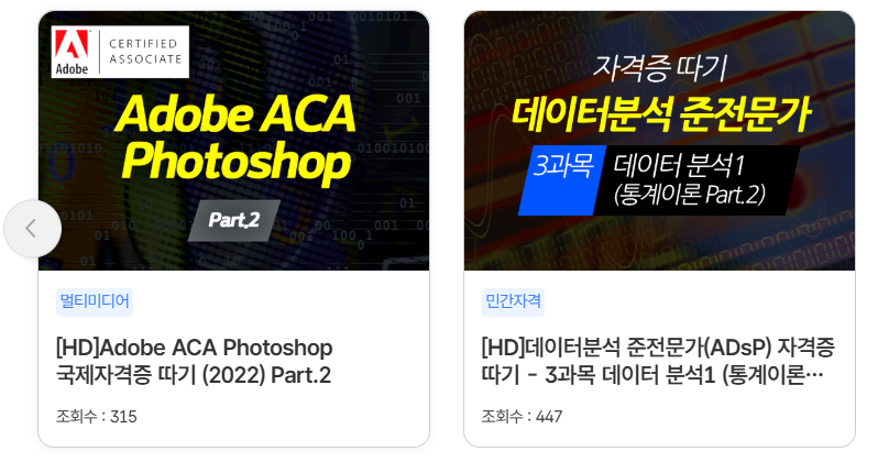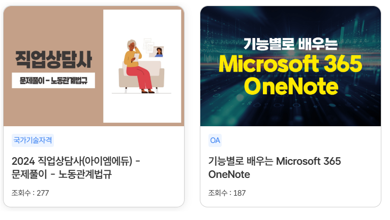 - 자격증 준비: 컴퓨터 활용 능력, 한국사, 공인중개사 등 각종 자격증 강의