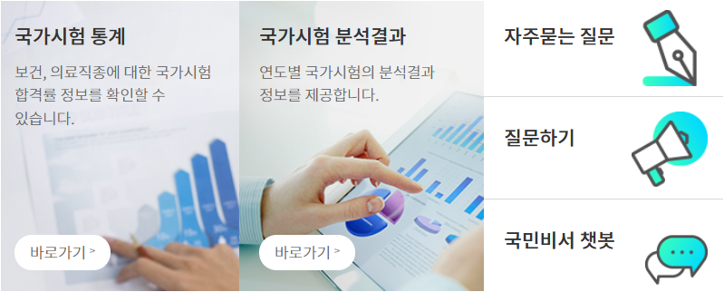 시험 일정 확인: 매년 각 직종별 국가시험 일정이 공지됩니다. 시험 날짜, 접수 기간, 발표일 등을 한눈에 확인할 수 있습니다.