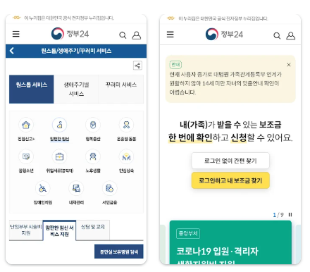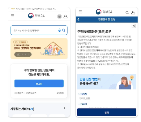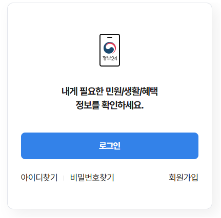 - 앱 다운로드: 구글 플레이스토어 또는 애플 앱스토어에서 '정부24' 검색 후 설치
