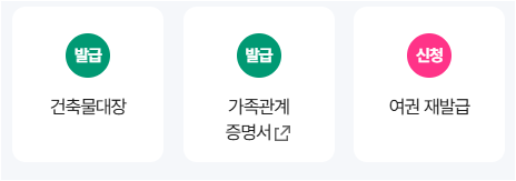 예: 주민등록등본 발급 → ‘신청하기’ → 인증 → 수령방법(출력/전자문서지갑 등) 선택 - 발급 완료 및 출력