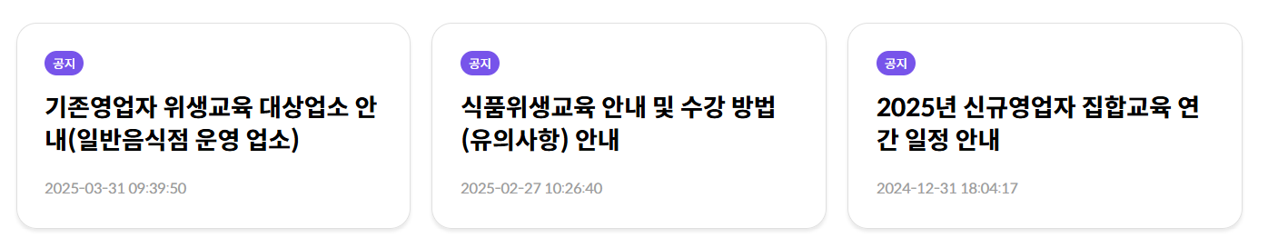 - 영업자 및 종사자 위생교육 대상자: 영업허가를 이미 받은 자 중 정기 위생교육이 필요한 경우