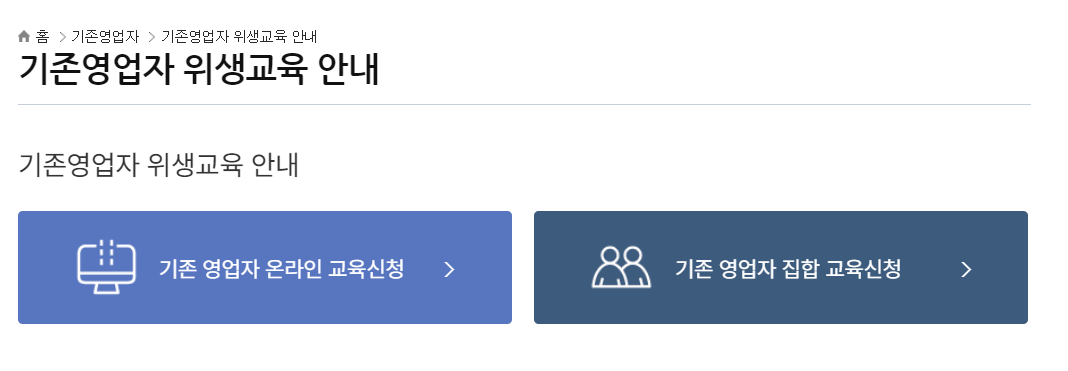 식품위생 관련 신규 영업자는 2022년 10월부터 온라인 교육 신청이 불가하며, 집합 교육으로 사전 접수 신청이 필수입니다. 수입식품안전관리 관련 신규 영업자는 온라인 교육 신청만 가능합니다.