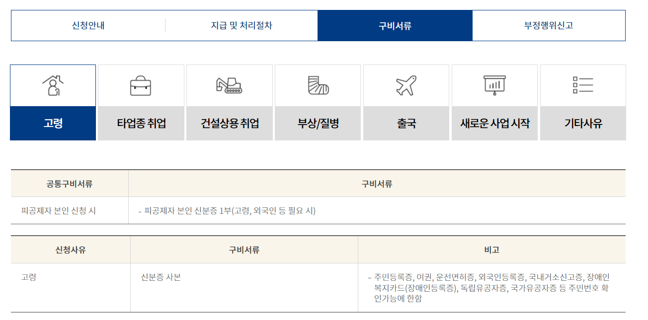 -구비서류: 퇴직사유별 구비서류 일체