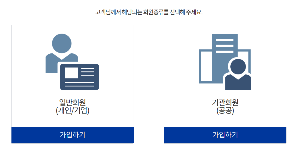 시스템의 다양한 기능을 활용하기 위해서는 회원가입이 필요합니다. 이미 회원이라면, 로그인 절차를 거치면 됩니다. 회원가입 시 필요한 정보는 사업자 등록번호, 대표자 정보 등입니다.