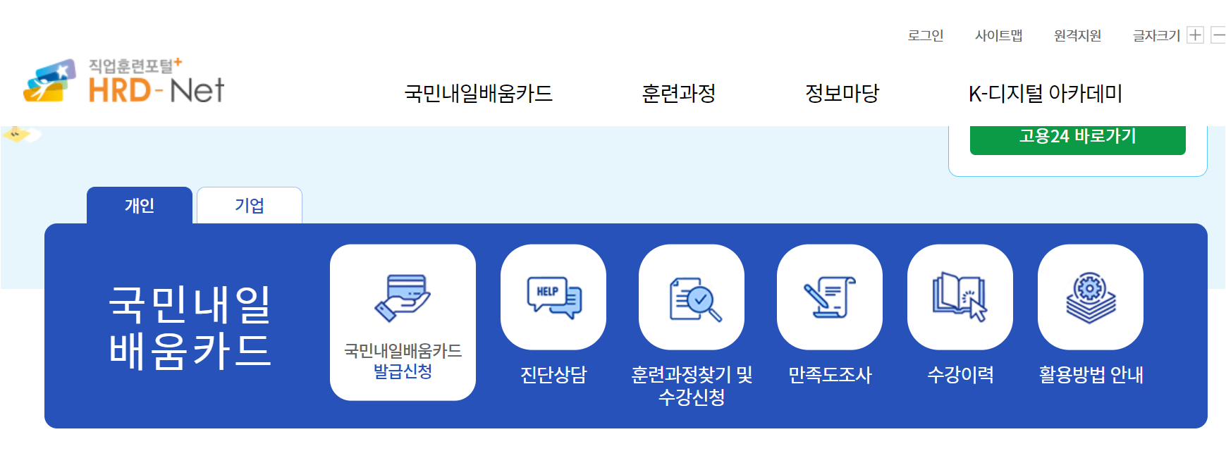 - 훈련 과정 검색: 다양한 직업훈련 과정을 검색하고 비교할 수 있습니다.