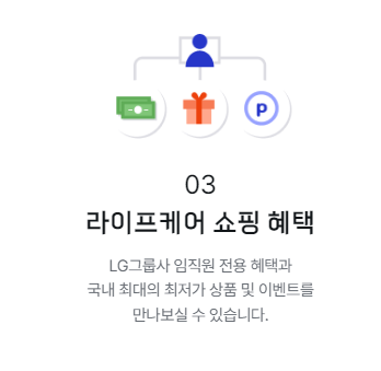 LG라이프케어 복지몰은 LG그룹의 임직원들을 위한 복지 혜택 제공 사이트입니다. 이 복지몰은 다양한 생활용품, 건강관리 제품, 문화 서비스 등을 할인된 가격에 제공하여 임직원들의 삶의 질을 향상시키는 것을 목표로 하고 있습니다.