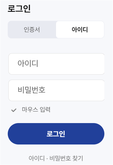 아이디 및 비밀번호 설정: 로그인에 사용할 아이디와 비밀번호를 설정합니다.