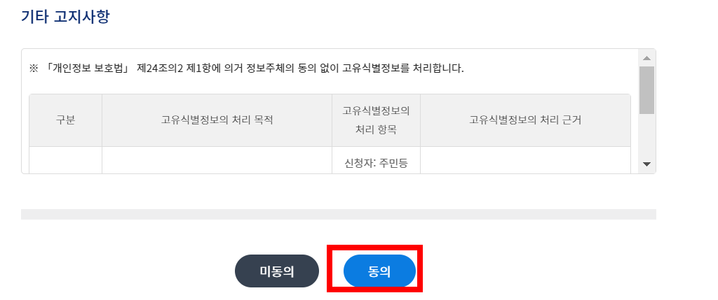 2. 개인회원인 경우 전체 약관에 동의체크하시고 동의버튼을 클릭하세요.