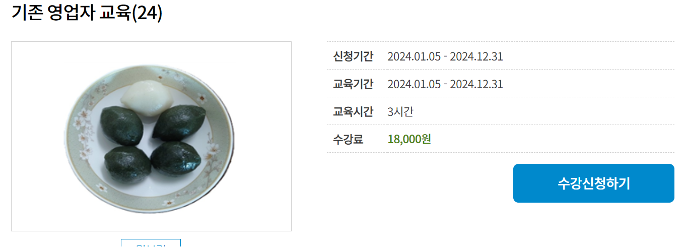 한국 떡류식품가공협회 온라인 위생교육 (https://www.ekfdd.or.kr)