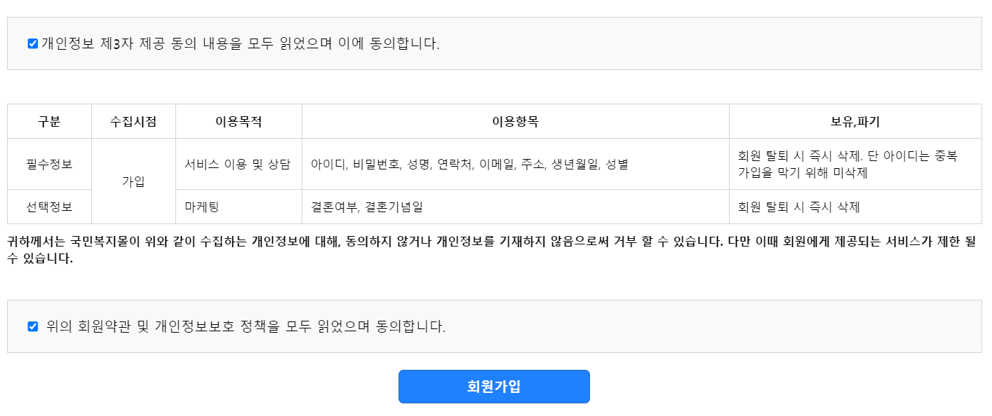 2. 약관 및 개인정보 수집에 모두 동의해주세요.