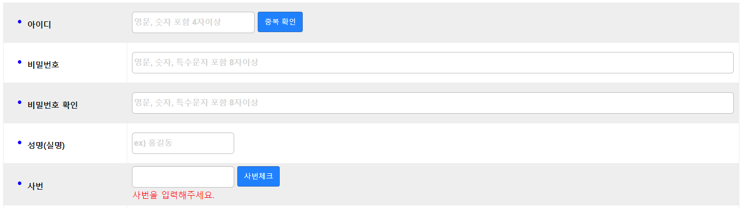 3. 아이디/비번, 성명, 사번을 입력하세요.
