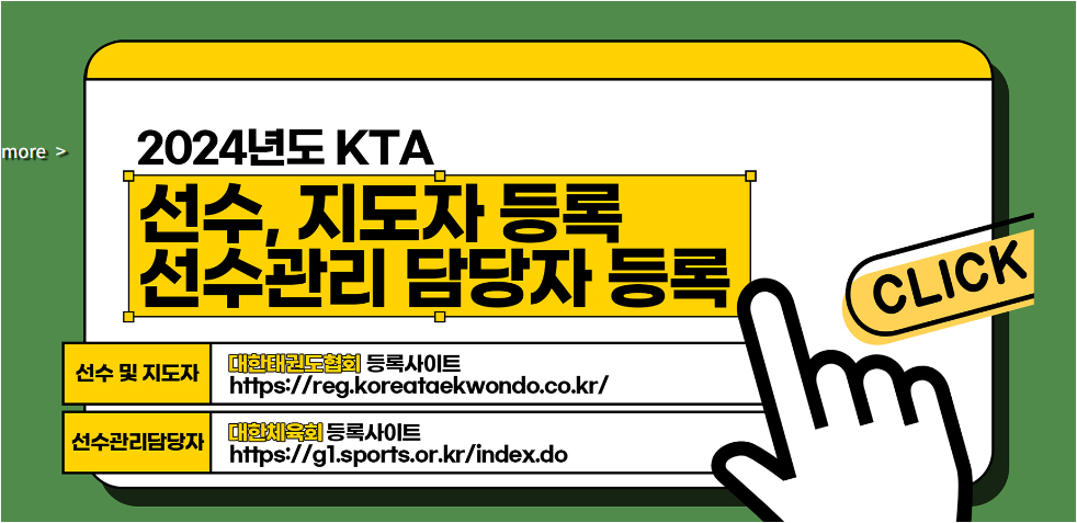 태권도협회 홈페이지 주소는 (https://www.koreataekwondo.org/)입니다. 태권도 국가대표 선수단을 소개하고 학과정보와 국제대회, 국내대회등 다양한 정보를 제공하고 있으며 홈페이지 이용을 위해서는 핸드폰 본인인증을 통한 회원가입 후 이용가능합니다.