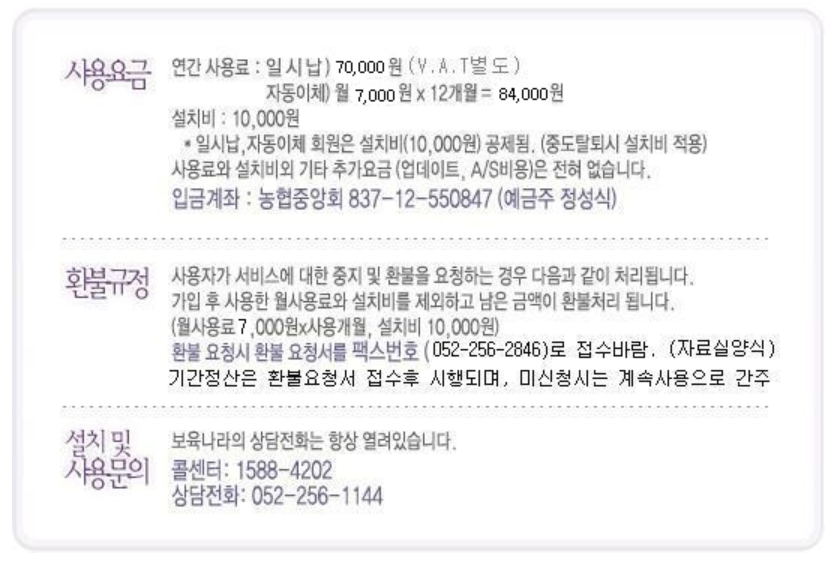 -기타 추가 요금: 사용료와 설치비 외에 업데이트, A/S 등의 추가 요금은 없습니다.