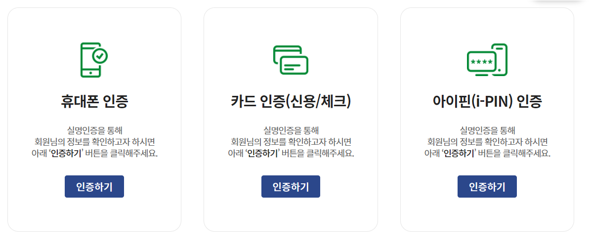 3. 실명인증을 위해 휴대폰 본인인증 절차를 완료하세요. (아이핀 인증도 가능합니다.)